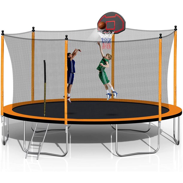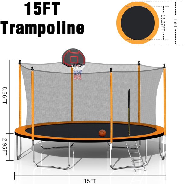15 FT Trampoline, 1000lbs Trampoline with Safety Enclosure Net, Outdoor Trampoline with Basketball Hoop, Inflator and Ladder for Kids, Adults Complies with ASTM Standards