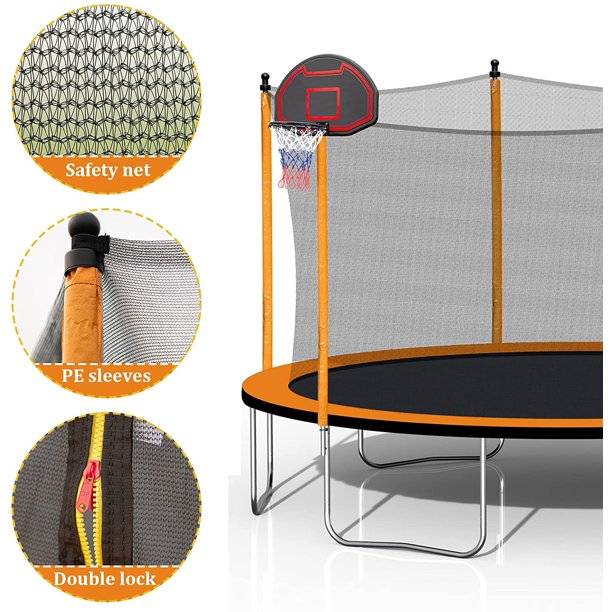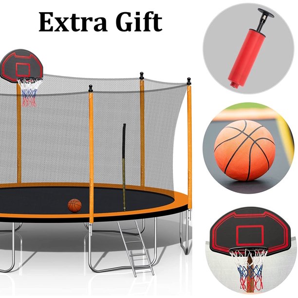 - 【COMPLETE TRAMPOLINE ACCESSORIES GIFT】Our trampolines are equipped with basketball hoop, net, rubber ball, inflator and ladder. We have detailed assembly instructions that will help you assemble the round trampoline easily and effectively. All of our trampolines are thoroughly tested for their safety and durability.