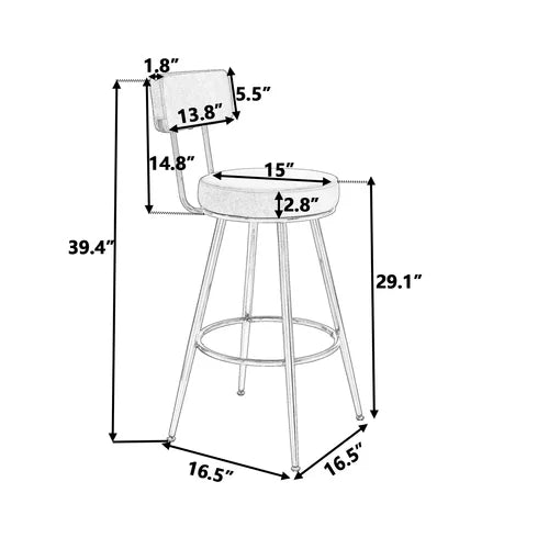 29.1" Velvet Counter Stools Set of 4,Upholstery Counter Height Bar Stools withPadded Backrest & Seat Cushion,Gold Metal Bse, for Kitchen Island,Dining Room Home Bar