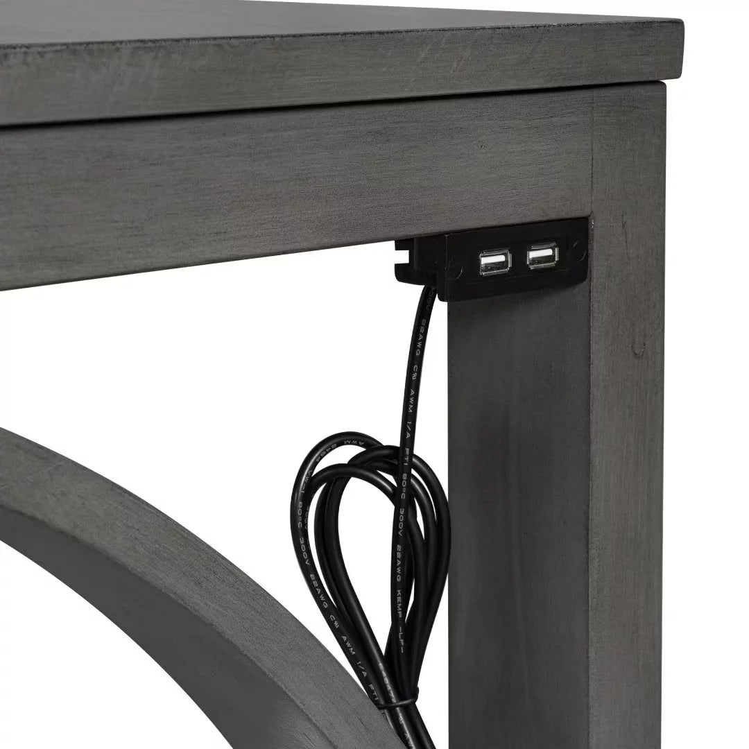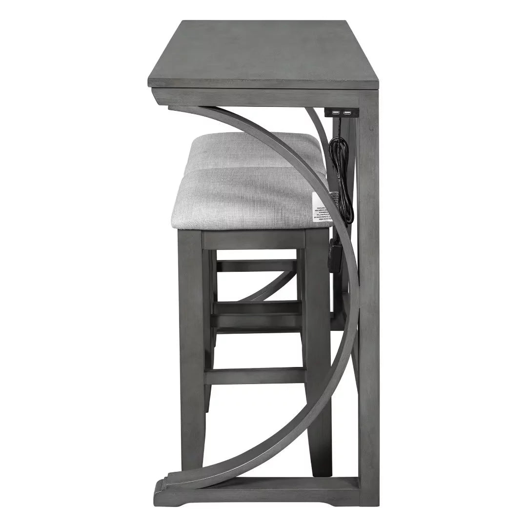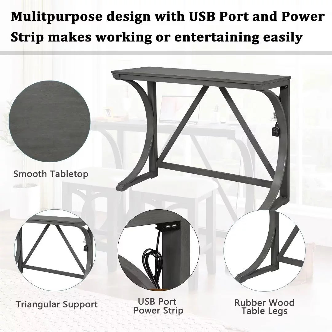 3-Piece Dining Table Set, Farmhouse Wood Bar Set Dining Set with 2 Upholstered Stools, Rectangular Counter Height Dining Table Set with Built-in USB Port, Circle Design Legs, for Small Places, Gray