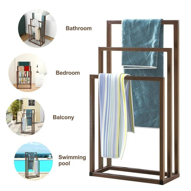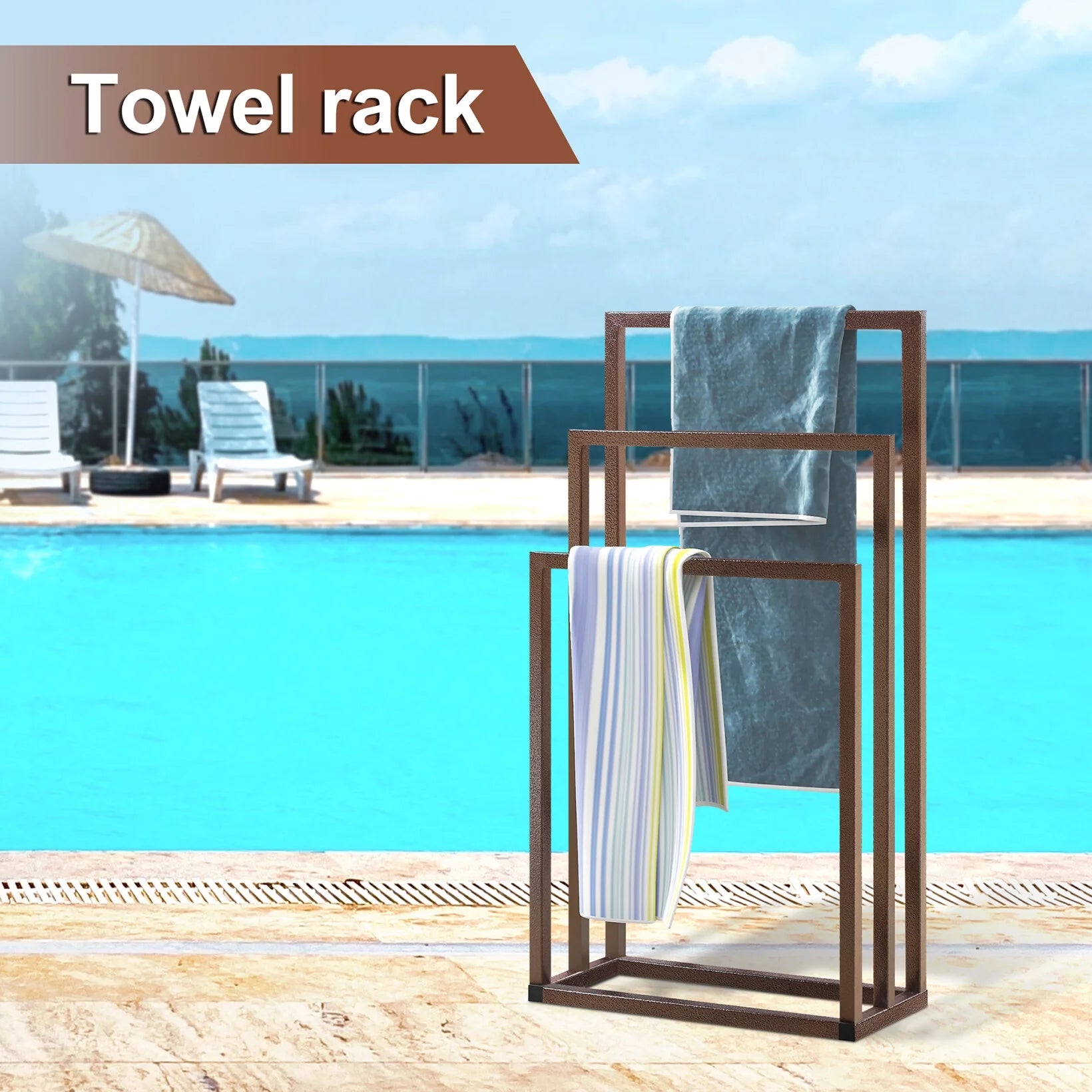 3 Tiers Metal Towel Bar Rack, Freestanding Hand Towel Holder with Storage Organizer, Floor Towel Racks with Bath Storage and for Bathroom Living Room Washroom,Pool