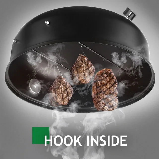 - 【QUALITY PROTECTION】 - Build-in thermometer with detailed temperature scale and adjustable air supply on lid for greater temperature control. Charcoal pan can provide you the stable use. basting and cooking a breeze.