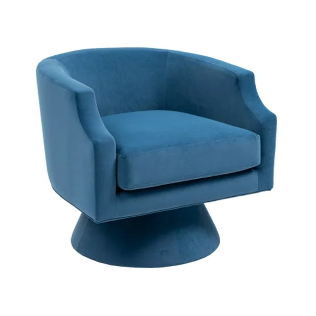 360 Degree Swivel Accent Barrel Chair, Round Velvet Armchair with Wide Upholstered and Cylindrical Pedestal, Modern Barrel Chair Reading Sofa Chair for Living Room Bedroom Office, Blue