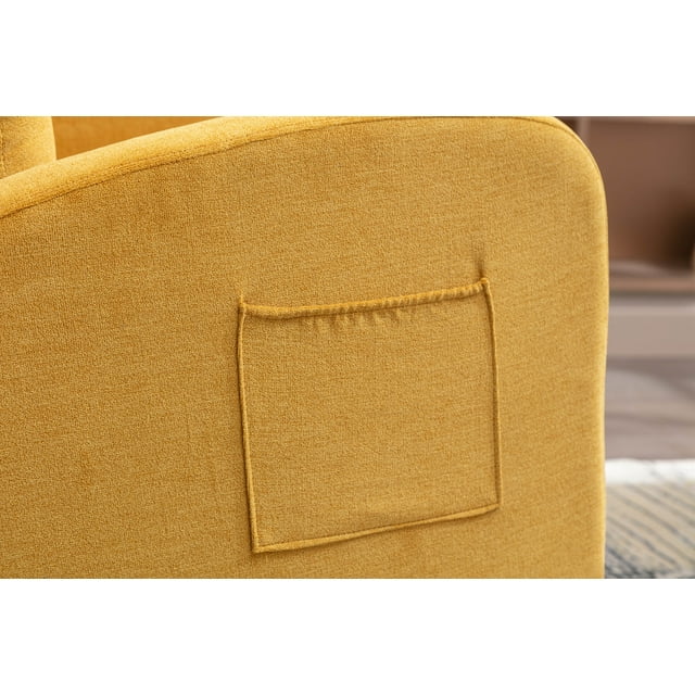 360 Degree Swivel Rocking Recliner Chair, Modern Lounge Sofa Chair with Side Pocket and High Backrest, Nursery Glider Chair with Metal Base, Ergonomic Chair for Office Living Room Cinema, Yellow