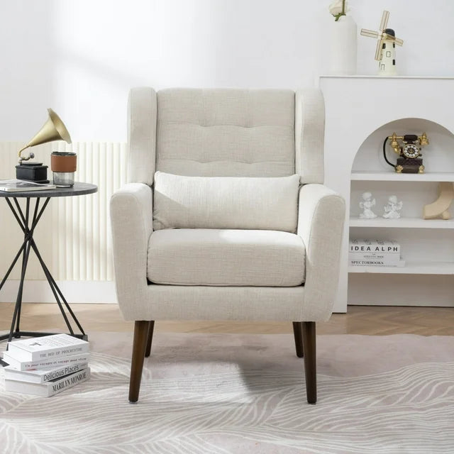 37.6 Inch Chenille Accent Chair, Modern Wing Chair with Upholstered Cushion and Pillow, Comfy Lounge Armchair for Living Room, Bedroom, Office, Beige