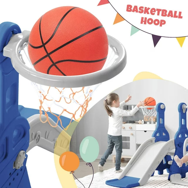 - Great Gift Idea - If you are looking for a gift for kids, this multi-function playset would be the best choice. The child will climb on a ladder on the slide, score goals in the basketball hoop, and idle on the swing. All these activities help your child to develop a higher intelligence, better motor activity, and all of this while having fun.Valid for spacious interiors, backyard or garden.
