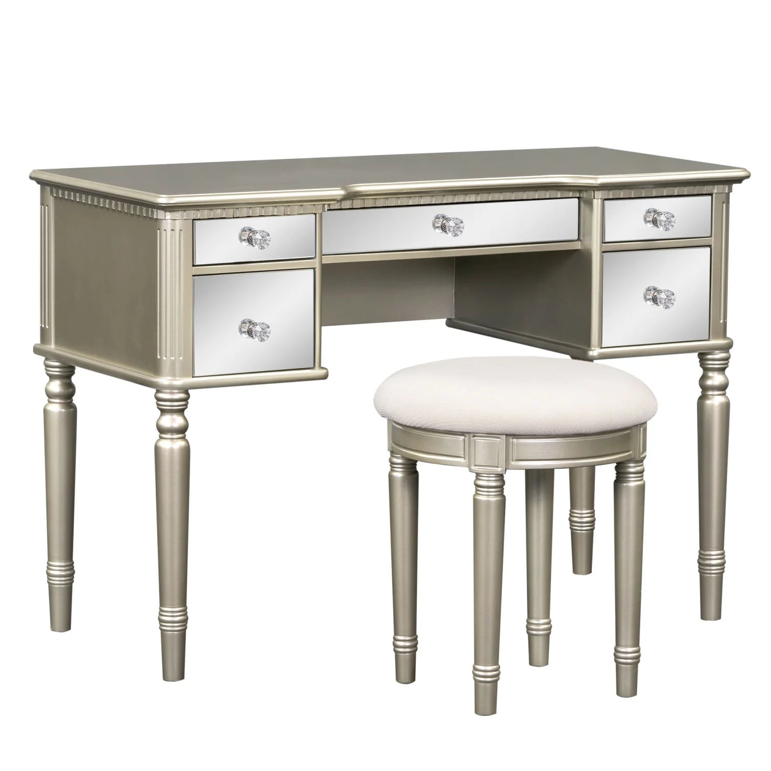 43" Luxury Dressing Table Set, Mid-centery Dresser with Tri-fold Mirror, 5 Drawers, Stool, Baroco Style Makeup Vanity Set for Bedroom, Living Room, Gold