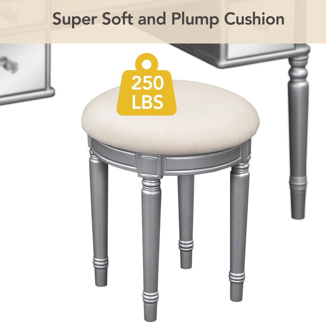 43" Luxury Dressing Table Set, Mid-centery Dresser with Tri-fold Mirror, 5 Drawers, Stool, Baroco Style Makeup Vanity Set for Bedroom, Living Room, Silver