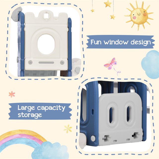 5 in 1 Toddler Slide and Swing Set, Kids Playground Climber Slide Playset with Basketball Hoop Freestanding Combination, Indoor & Outdoor Toys for Babies Kids, Blue