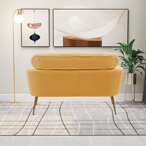 51"W Modern Boucle Loveseat Sofa, Small Mini Room Couch Two-Seater Sofa With 2 Throw Pillows & Gold Metal Legs, Leisure Sofa for Small Space Office Studio Apartment Bedroom, Yellow