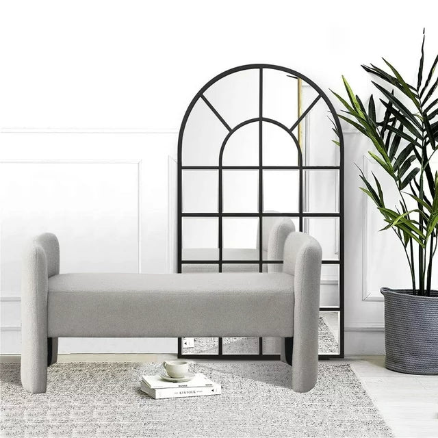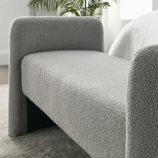 52" Inches Bedroom Bench, Modern Tufted End of Bed Bench with Arms, Upholstered Ottoman Couch Bedroom Benches for Foot of Bed Long Bench Window Sitting Fireplace Bench, 250LB, Grey Teddy