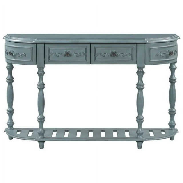 52"Retro Circular Curved Storage Console Table,Half Moon Entryway Table with 4 Drawers and Bottom Shelf, Sofa Table Hallway Table for Living Room, Hallway,Kitchen