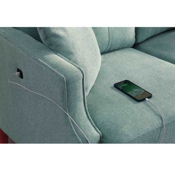 56.7" Modern Fabric Loveseat Sofa with USB Charging Port, Living Space Sofa 2 Seater, Loveseat Sofa with Waterproof FabricSuitable for Small Spaces, Living Room, Office, Easy to Install, Baby Blue