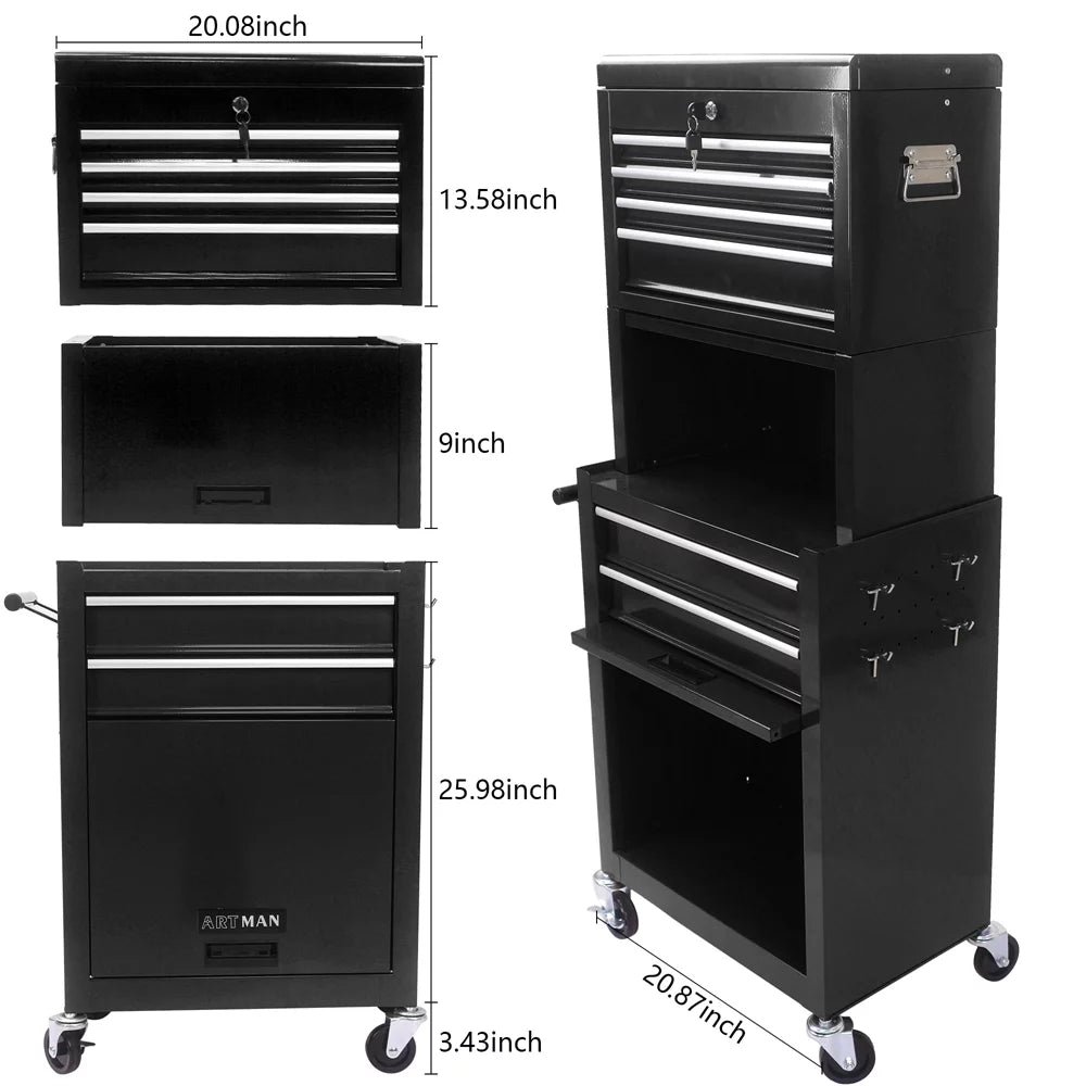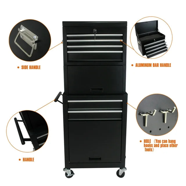 6-Drawer Rolling Tool Chest with Wheels, High Capacity Tool Box with Removable Casters Locking Mechanic Tool Cart Detachable Large Storage Cabinet Organizer for Workshop Warehouse, Black