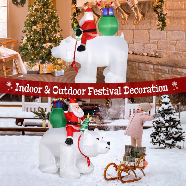 6ft Christmas Inflatable Santa Claus Rides Polar Bear with 15W LED Lights,Garden Santa Claus Decoration Outdoor Yard Christmas Decoration