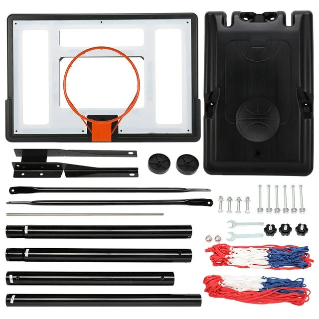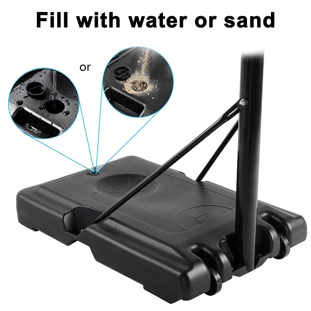 - [Fillable & Rugged Base]: Supported by a thickened base and reinforced triangular structure, portable basketball hoop ensures excellent stability. What's more, the base can be filled with water sand to enhance stability and make the basketball hoop more sturdy.