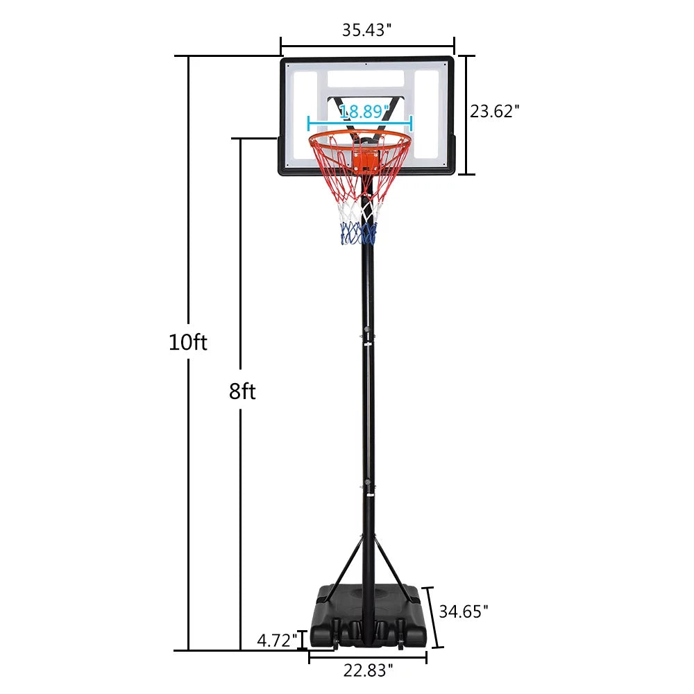 - [Easy Assembly & Humanized Design]: The adjustable basketball hoop stand comes with all the necessary parts and detailed instruction for you to install it easily. Moreover, the groove on the base is designed to hold the basketball when not in use. Backboard Dimensions: (90 x 60)cm / (35 x 24)".