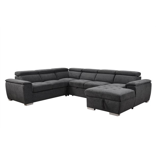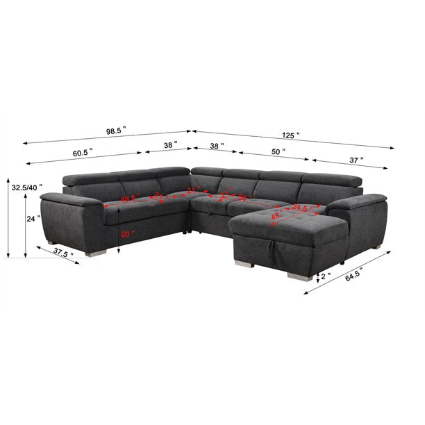 7-Seat Modern Fabric Sleeper Sectional Sofa Bed, U Shaped Oversized Sectional Sofa with Pull-Out Bed, Large Functional Couch, Suitable for Apartment, Living Room, Office, Guest Room, Dark Gray