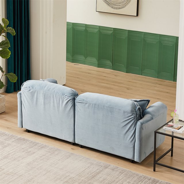 79" Velvet Upholstered Loveseat Sofa, Comfy Soft 3 Seater Couch with Turned Inward Back and Arms, Modern Couch for Living Room, Apartment, Office, Blue