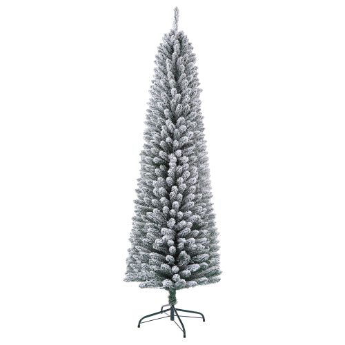 Product Name: 7 Feet Prelit Snow Flocked Pencil Christmas Tree Decoration 150 LED UL Plug Warm Lights 570 Branch Artificial Slim Xmas Tree Indoor Outdoor Home Decor Holiday