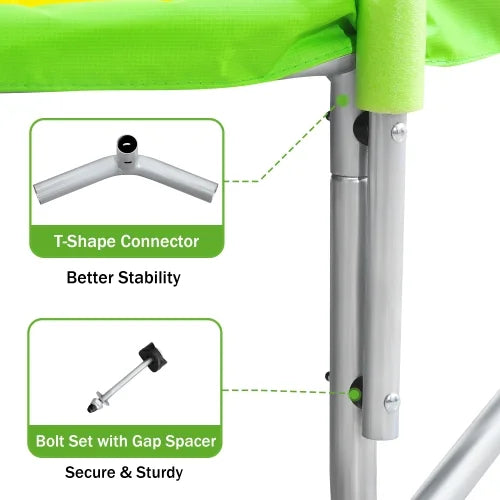 - [Active Anytime] It is important for children to have a place to play at any time. This trampoline is designed to withstand the test of time and weather. Its entire circle of the safety net is supported by 100% high-strength polyester fiber. The addition of active UV protectors can make it better resist damage from the sun. The jumping mat tightly woven with high-elastic materials and 36 premium springs can let children jump freely and completely release their nature. It can bear up to 220 pounds of user weight.