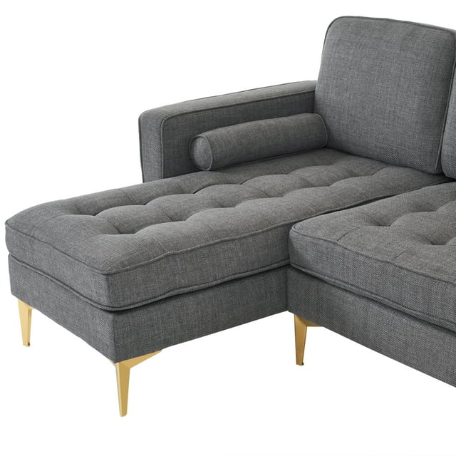 This combination sofa comes with a reversible chaise, two cylindrical pillows, and soft grid-patterned seat cushions, providing you with great comfort. The solid wood frame combined with a metal frame and stable metal sofa legs ensures durability. Create a comfortable and stylish living room with this modern-style L-shaped combination sofa.