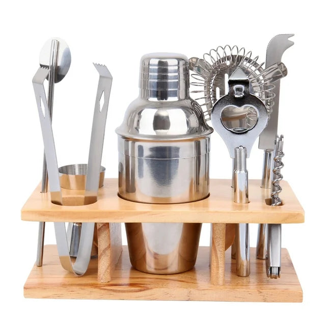 - [High Quality Materials]Made of thickened stainless steel, this cocktail shaker set is sturdy and easy to clean. Each cocktail accessory is crafted with care to provide you with a sure-fire way to make all your favorite beverages such as margaritas, martinis, daiquiri, and mojito at home or bar.
