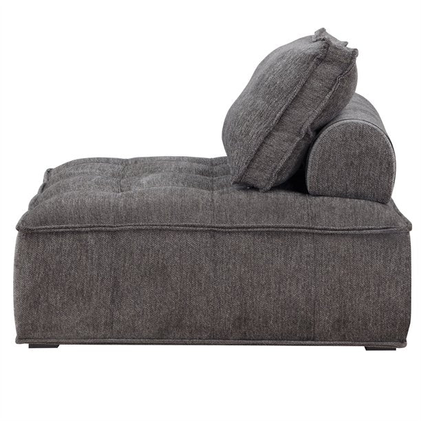 Bring a touch of easy style to your space with this modern lounge chair. This low-profile cushion chair comes with a rectangular throw pillow and a cylindrical bolster pillow. The chair features an engineered wood frame and a thick, square cushion seat with button-tufting. The throw pillows adhere to the chair cushion with hook-and-loop fasteners to prevent slipping. This chair is ready to complete the look in any contemporary or mid-century modern space.