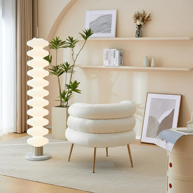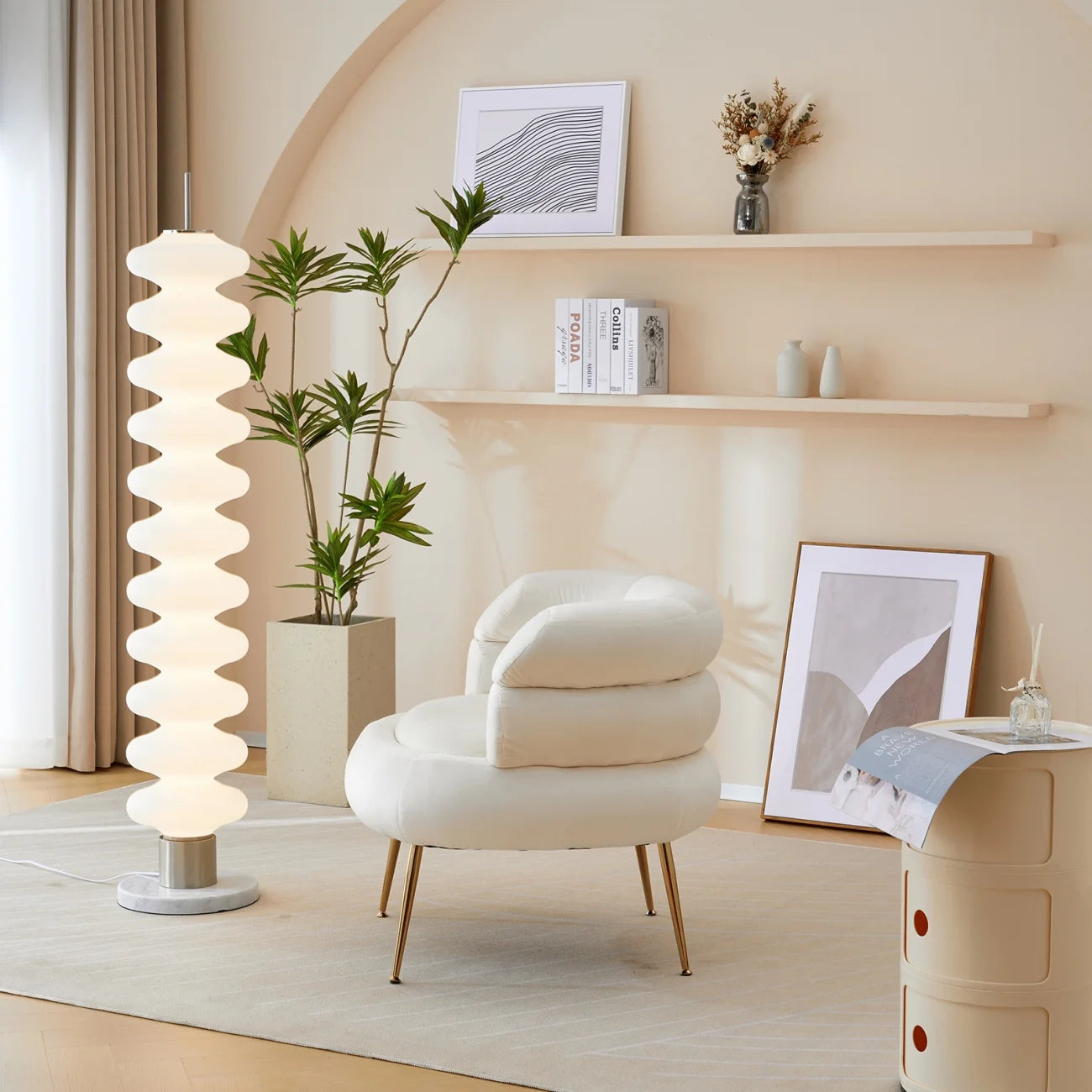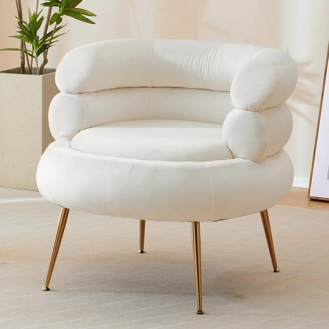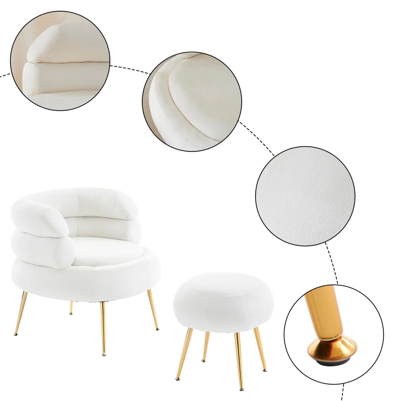 Accent Chair with Ottoman, Velvet Upholstered Barrel Chair and Ottoman Set for Loving Room, Modern Comfy Armchair and Footrest with Metal Legs for Living Room, Bedroom, Reading Room, White