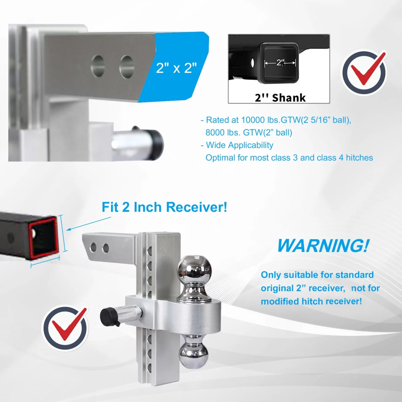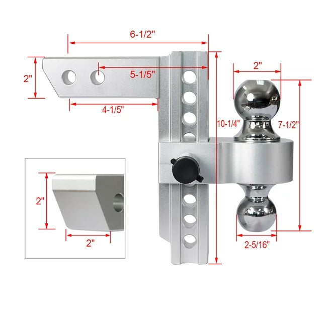 Adjustable Trailer Hitch, Fits 2 Inch Receiver, 8 Inch Adjustable Drop Hitch, 10,000 Lbs GTW-Tow Hitch for Heavy Duty Truck, Solid Truck Hitch