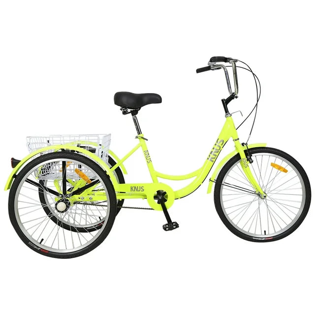Adult Tricycle Trikes, Single Speed, Adult Trikes, 26 Inch 3 Wheel Bikes, Three-Wheeled Cruiser Bicycle with Large Shopping Basket, for Women, Men, Yellow