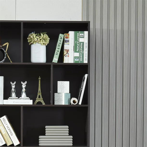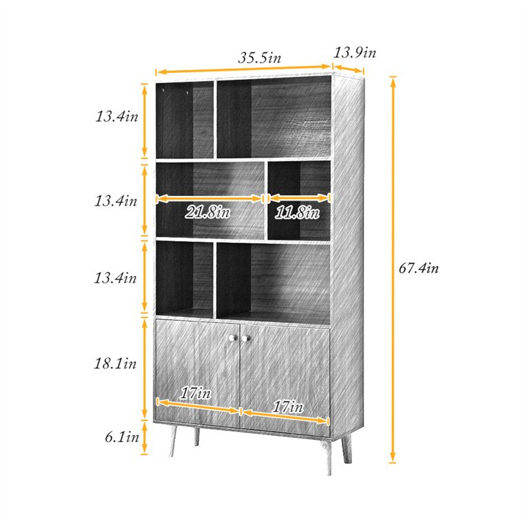 Bookshelf with 2 Open Shelves and 2 Doors, Modern Floor Standing Bookcase with Solid Wood Legs, Wooden Storage Organizer Shelf, Display Shelf for Living Room Bedroom and Study Room, Coffee
