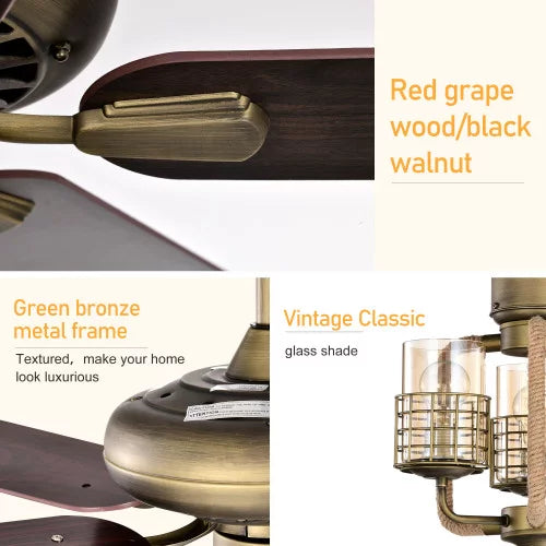 - This is a classic large-blade ceiling fan with 5 reversible blades, both sides are red grape wood and white maple, suitable for various decoration styles, classic and versatile, with retro lampshade style, looks like Very advanced. You will not hear noise even when the fan rotates at the maximum speed. Industrial pendant lighting fixture design perfect for Living Room, Bedroom, Dining Room, Restaurants, Cafes,Hotel etc.