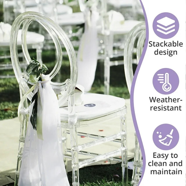 Clear Chairs, Modern Dining Chair Set of 4, Transparent Banquet Ghost Chair, 17.5" High Modern Accent Side Desk Chairs with Oval High-Back, Stacking Dining Chairs for Weddings, Banquets, Events