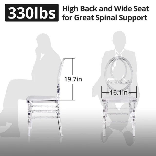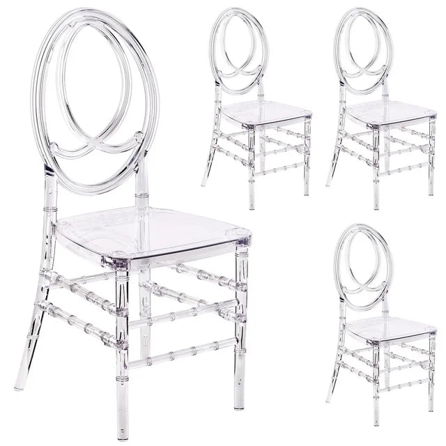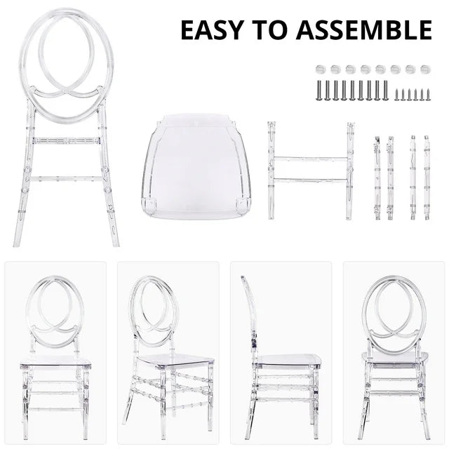 Clear Chairs, Modern Dining Chair Set of 4, Transparent Banquet Ghost Chair, 17.5" High Modern Accent Side Desk Chairs with Oval High-Back, Stacking Dining Chairs for Weddings, Banquets, Events
