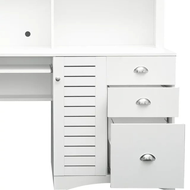 Desktop Computer Desk with Hutch, Bookshelf, Storage, Drawer, Home Office Writing Table, Student Study Laptop Tables Workstation, Wood Desk Bookcase Combination, for Small Space, White