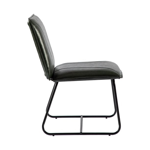 Dining Chair Set of 2, Mid Century Dining Bucket Chair with Backrest and Metal Legs,Industrial Design Faux Leather Counter Stool, Armless Side Chair for Dining Room and Kitchen, Green