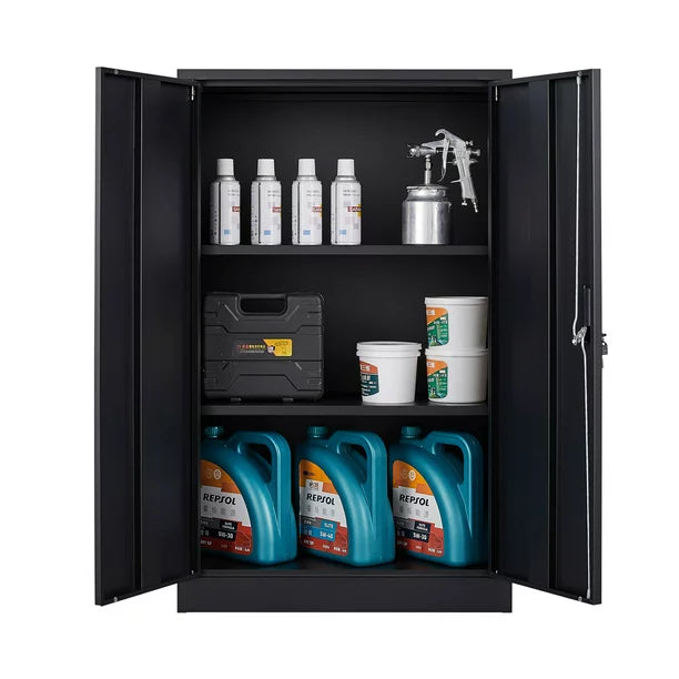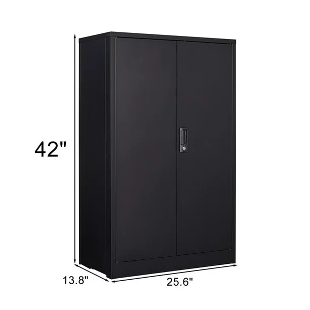 Folding Filing Storage Cabinet, Metal Storage Cabinet with 2 Locking Doors and 2 Adjustable Shelf, 42 " Steel Storage Lockable Garage Cabinet Tool Cabinets for Home Office,School,Garage, Black