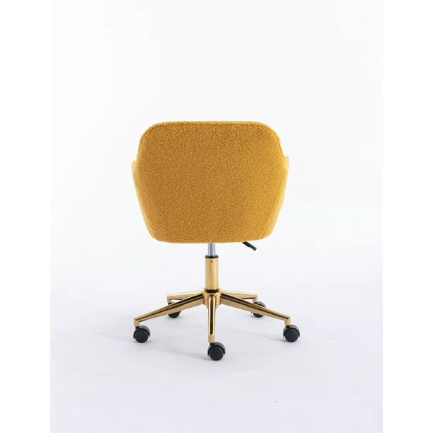 Home Office Chair, Modern Teddy Fabric Material Makeup Chair, Adjustable Height 360 Revolving Accent Chair with Rolling Wheels and Armrest for Living Room Bedroom Office Vanity, Yellow