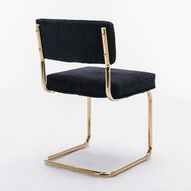 Modern Dining Chairs with Gold Metal Base, Mid-Century Accent Armless Kitchen Chairs with Channel Tufting, Upholstered Boucle Fabric Side Chairs for Kitchen Living Room, Set of 2, Black
