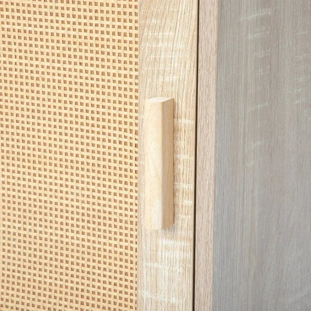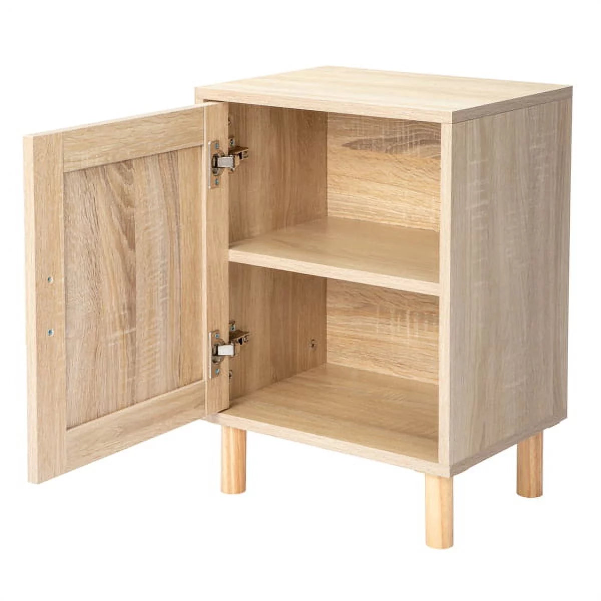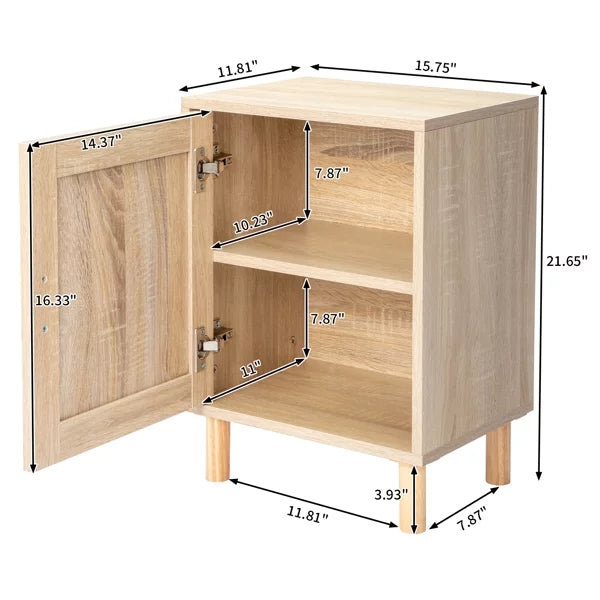 Rattan Nightstand, Rattan Cabinet, Nightstand with Rattan Decorated Door and Solid Wood Legs, End Table with Storage for Bedroom, Living Room, Hallway and Small Spaces, Rustic Natural