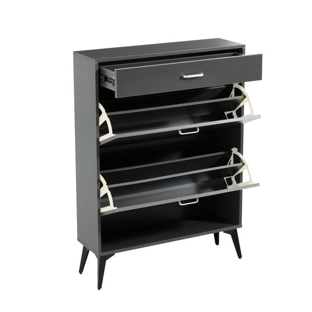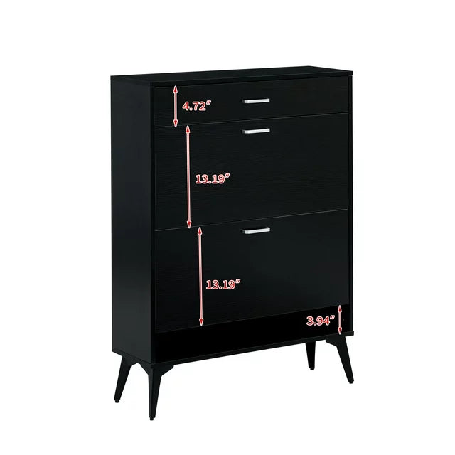 Shoe Cabinet with 2 Flip Drawers,Entryway Shoe Storage Cabinet with Open Shelves and Drawer,Shoe Storage Shelves for Entryway Hallway,Black