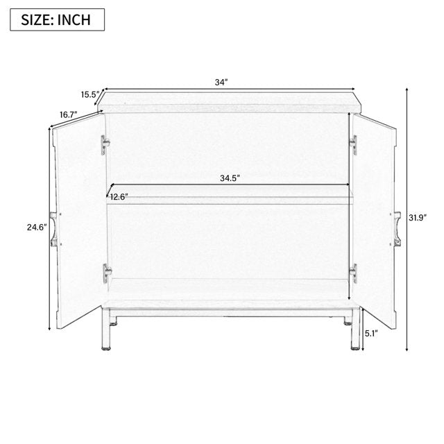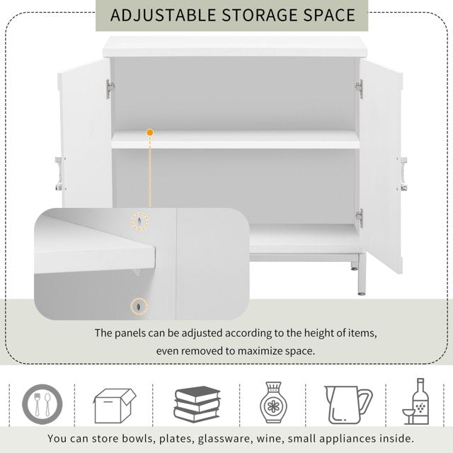 Sideboard Storage Cabinet, Simple Accent Cabinet with Doors and Solid Wood Veneer, Modern Buffet Cabinet Entryway Cabinet with Storage and Metal Leg Frame for Living Room, Dining Room, Home, White