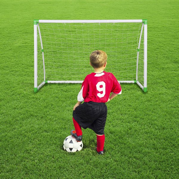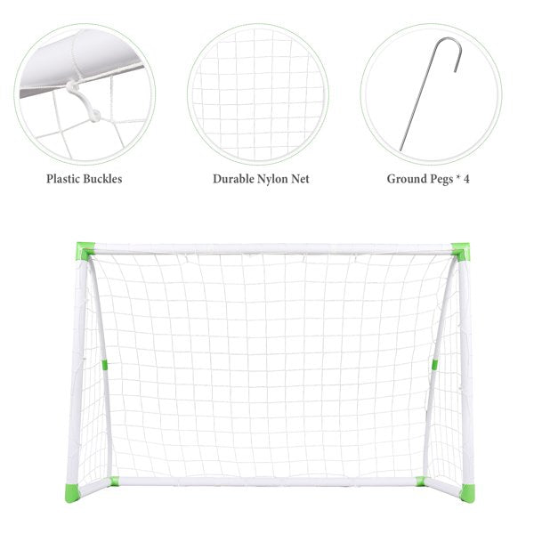 The 6' x 4' Soccer Goal Training Set with Net Buckles Ground Nail Football Sports is highly recommended for use on the beach, community playground, school, etc. when playing soccer. The durable, lightweight frame is made of PVC tubes and the tube diameter is nearly 1.97" (50mm), which can hold powerful shoot and give you an excellent experience of playing soccer. Plus, it is easy to assemble or disassemble for portability. Buckles are included to fix the net firmly and ground nails to secure the goal firmly on the ground.