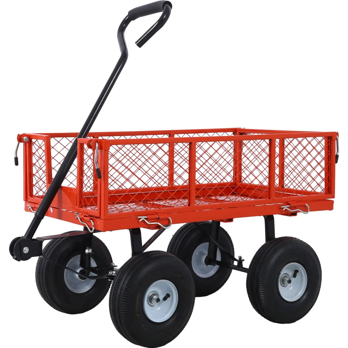 Steel Garden Cart,Wagon Cart with Removable Mesh Sides to Convert into Flatbed,Metal Wagon for Garden,Farm,Yard,3 cu ft,550 lbs Capacity,Red