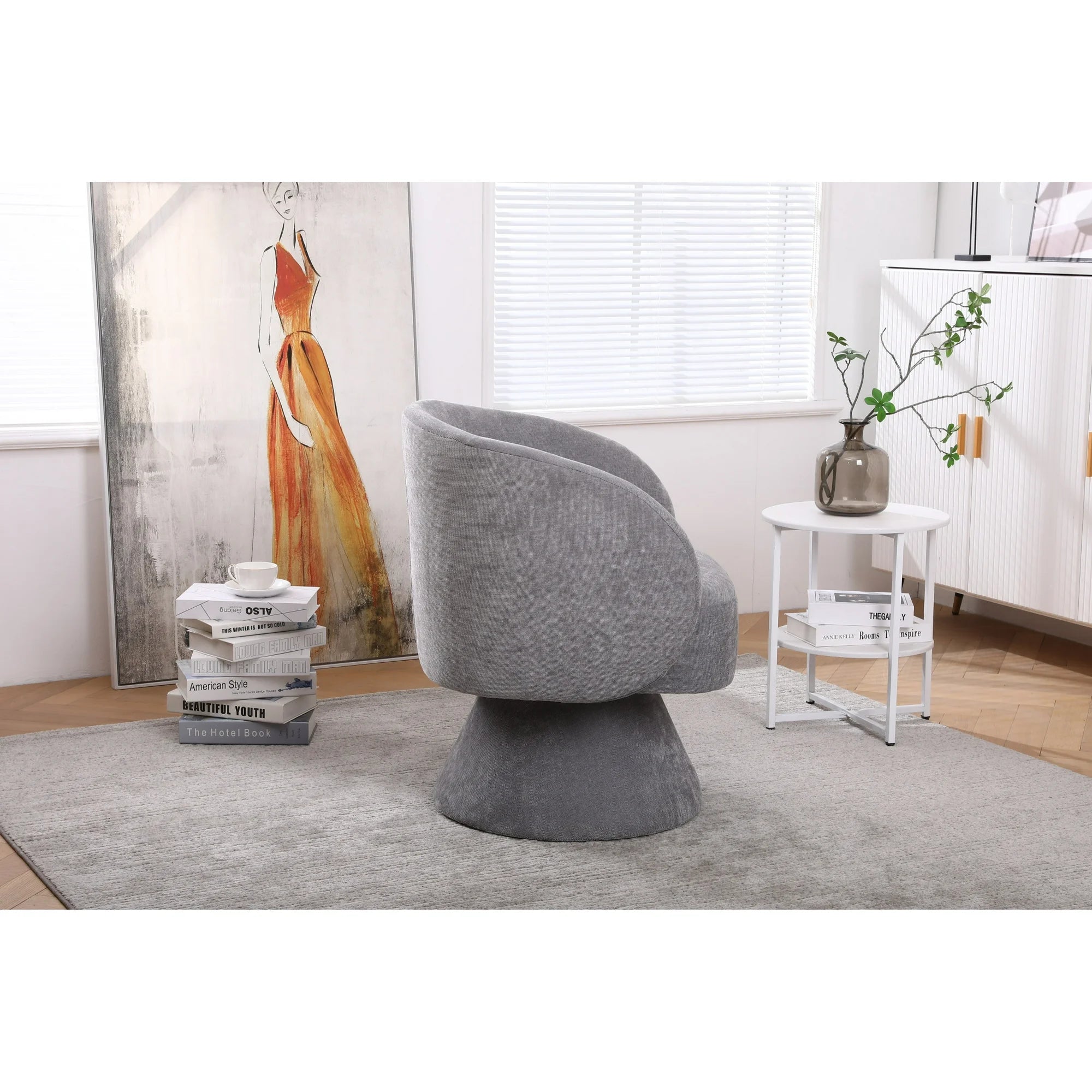 Swivel Accent Chair Armchair, Round Barrel Chair Comfy Linen Fabric Accent Sofa Chair Club Chair Leisure Chair for Bedroom Living Room Lounge Hotel Office, Light Gray