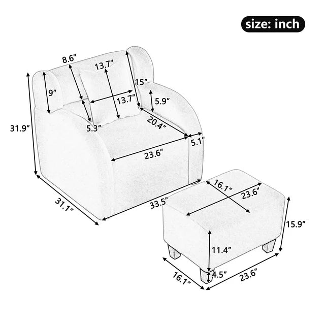 Swivel Accent Chair with Ottoman,360 Degrees Swivel Barrel Chair with Square Footstool,Teddy Short Plush Velvet Armchair,Comfy Lounge Chair Living Room Chair for Living Room Bedroom Office,Gray