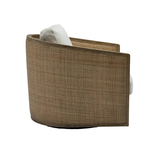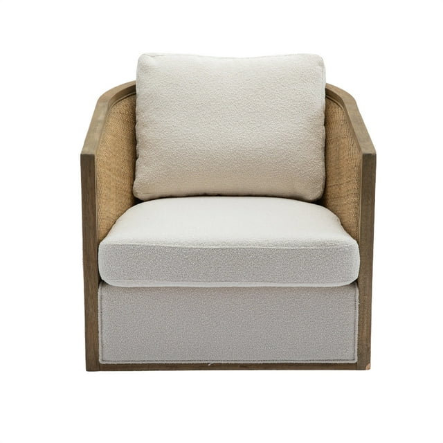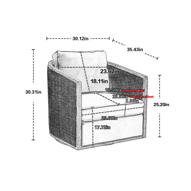 Swivel Barrel Chair, Modern Upholstered Armchair Leisure Chair with 360 Degree Swivel Metal Base and 1 Pillow, Comfy Round Single Sofa Chair Club Chair for Living Room Bedroom Office, Beige