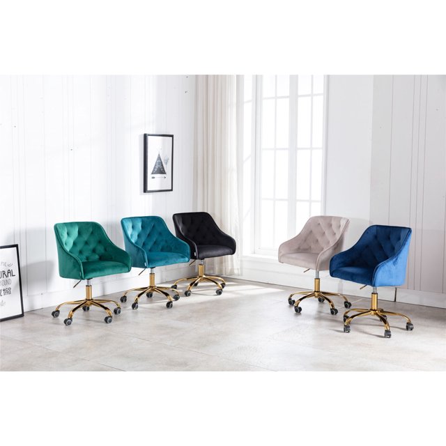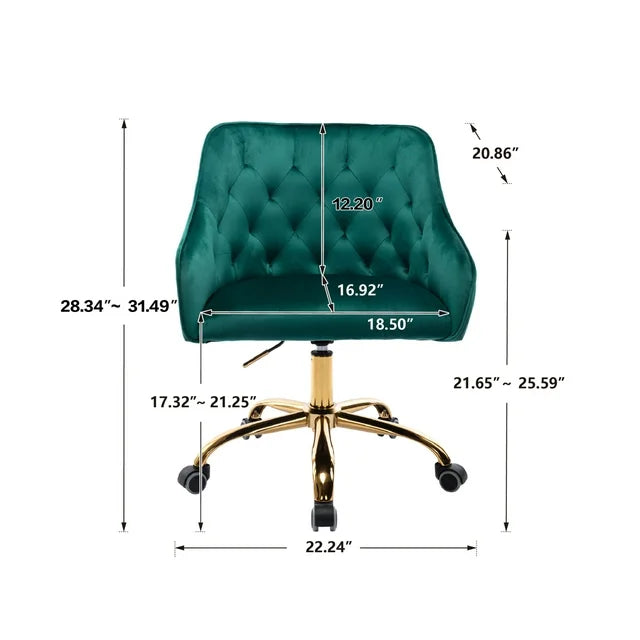 Swivel Shell Office Chair,Velvet Tufted Upholstered Desk Chair with Metal Star Base and Tufted Back,Vanity Chair, Height Adjustable Shell Shape Computer Armchair for Living Room Bedroom Office,Green