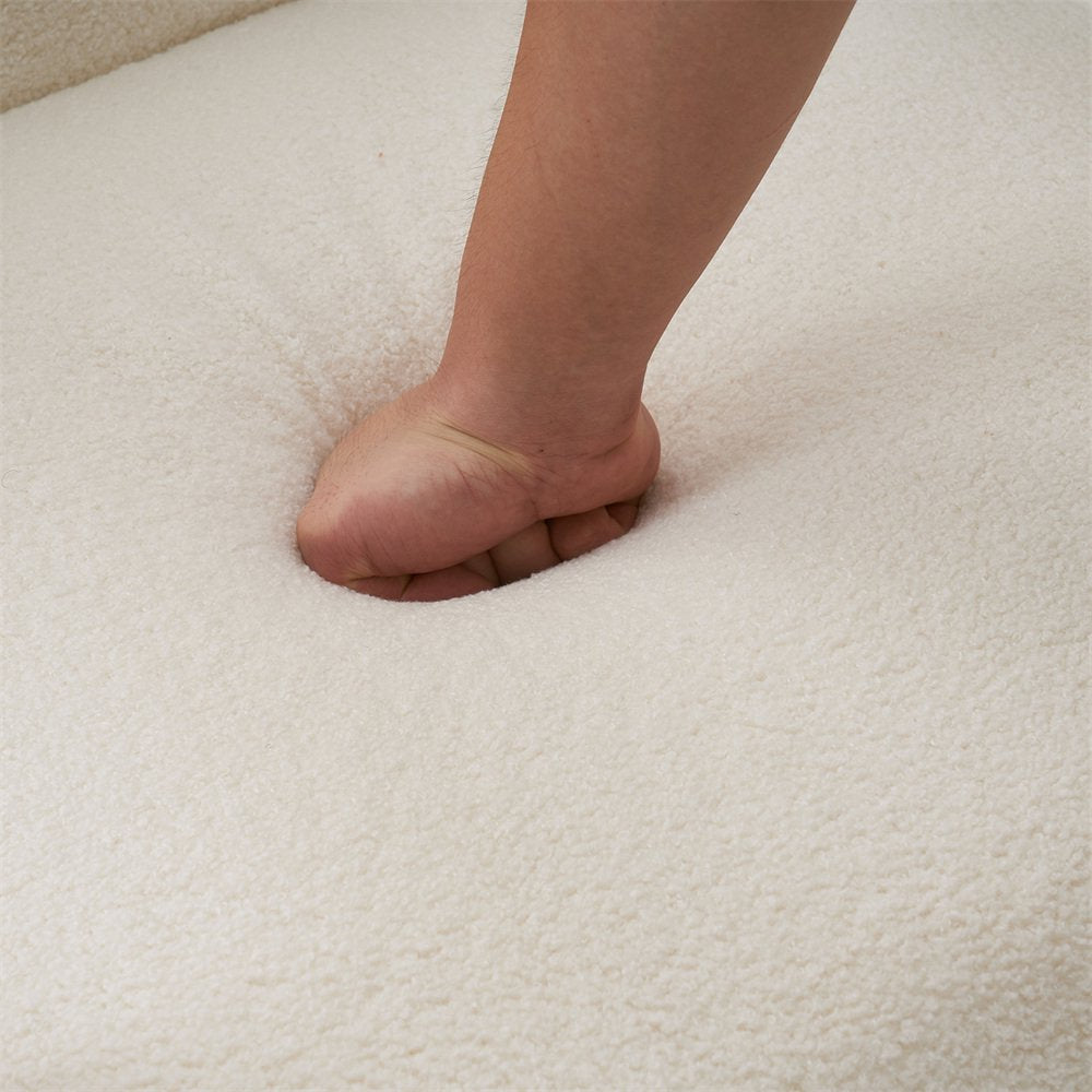 Teddy Fleece Living Room Chair, Modern Accent Chair with Solid Wood Armrest and Padded Seat, Upholstered Armchair for Bedroom Living Room Dorm, Creamy-White